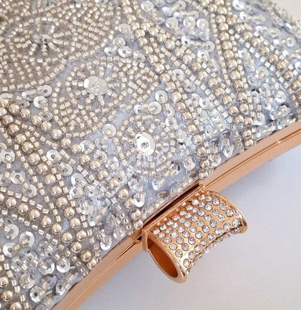 Luxe Silver Beaded Clutch