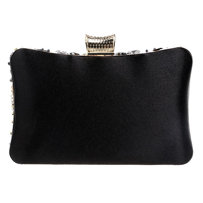 - Composition: Satin exterior with a polyester lining; beads, rhinestones, crystals, sequins and chain embellishments
