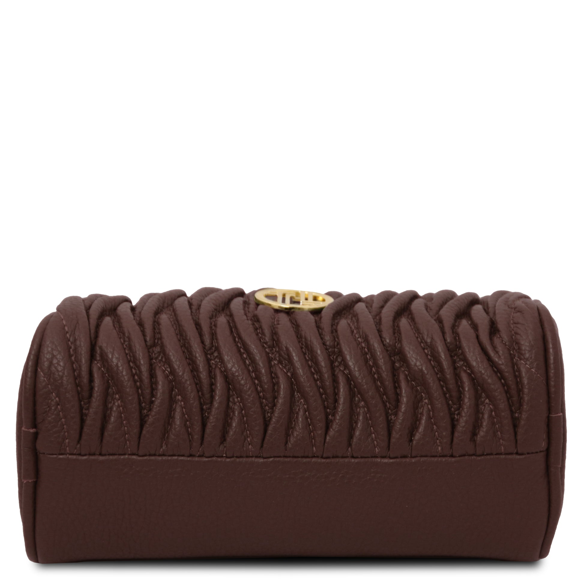Carry it as a sleek leather clutch bag for evening polish or clip on the adjustable strap for a hands-free mini bag silhouette. The semi-rigid shape holds its line, the textures add depth, and the chain reads like jewellery – a mini leather bag designed to move with you.