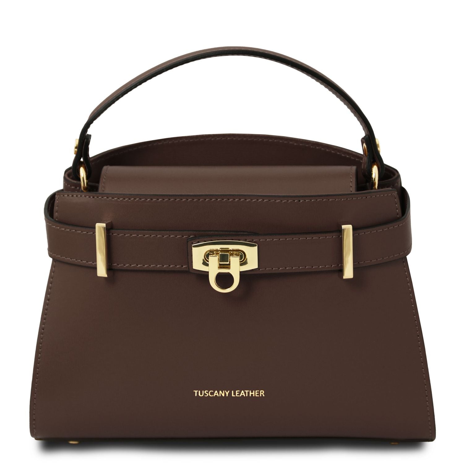 - Hardware: Gold-tone accents with hot-stamped Tuscany Leather logo