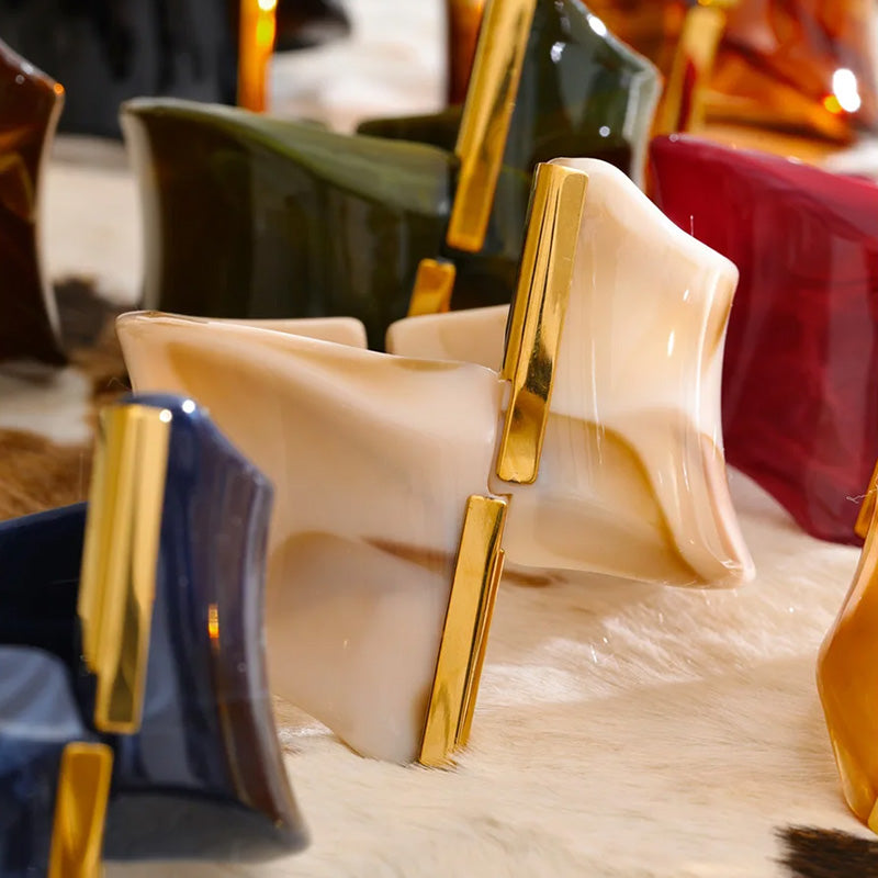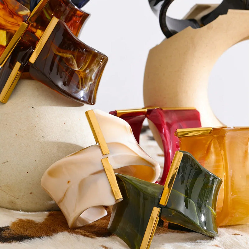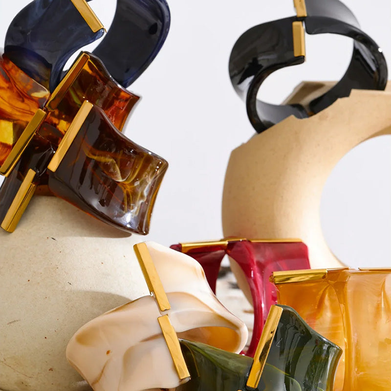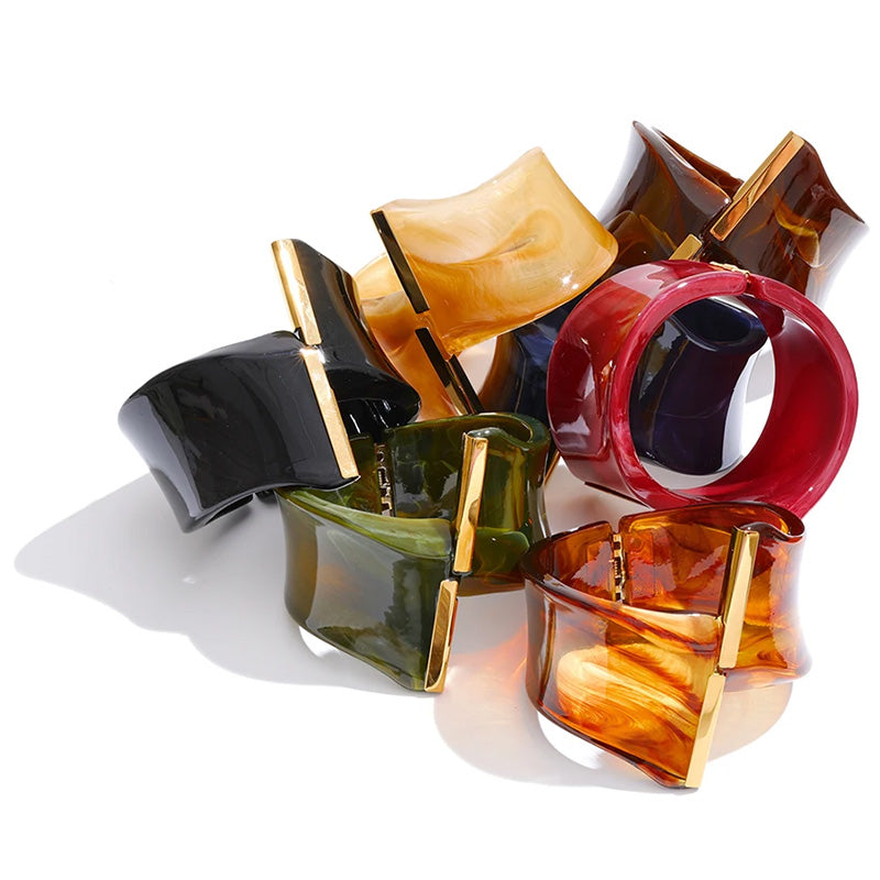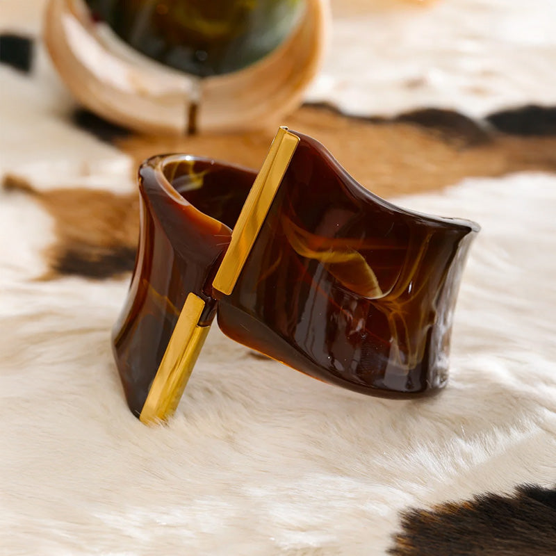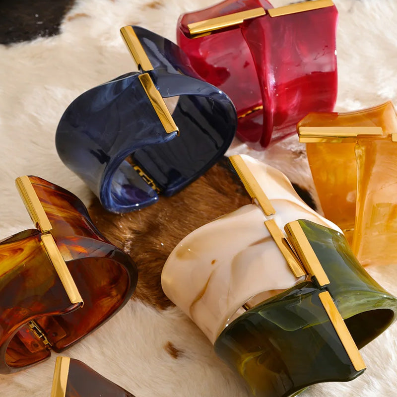- Style: Statement cuff bangle blending abstract art and contemporary glamour